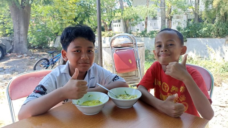 Kegiatan ini juga dihadiri oleh beberapa anak, termasuk Kevin Tano dan Muhammad Affan Aulia. Kedua bocah ini sangat menikmati makanan soto tersebut.