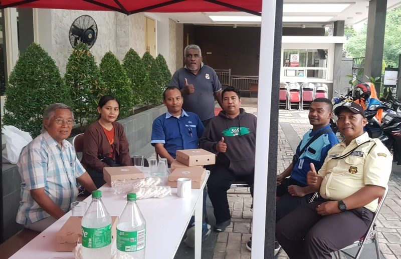 Di pelataran Gereja GKI Ngagel, Kamis (22/1) karyawan dari koster, satpam dan supir  berkumpul untuk beribadah bersama.