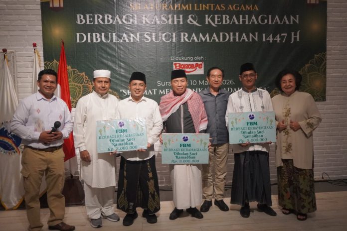 Surabaya, 10 Maret 2026 – Forum Beda tapi Mesra (FBM) dan Yayasan Pondok Kasih (YPK) menggelar acara silaturahmi dan buka puasa bersama di Boncafe, Jl. Raya Gubeng No. 46 Surabaya. Acara ini dihadiri oleh lebih dari 100 peserta, termasuk Kementerian Agama Jawa Timur yang diwakili oleh tiga Pembinas dari Katolik, Pembimas Buddha dan Pembimas Hindu.