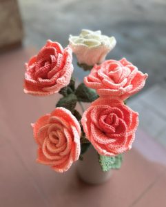 “Adapun produk yang dibuat, antara lain rajutan topi, baju, sepatu, boneka, tas, gantungan kunci, bunga-bunga, dan lain-lain,” tambah Erliza.